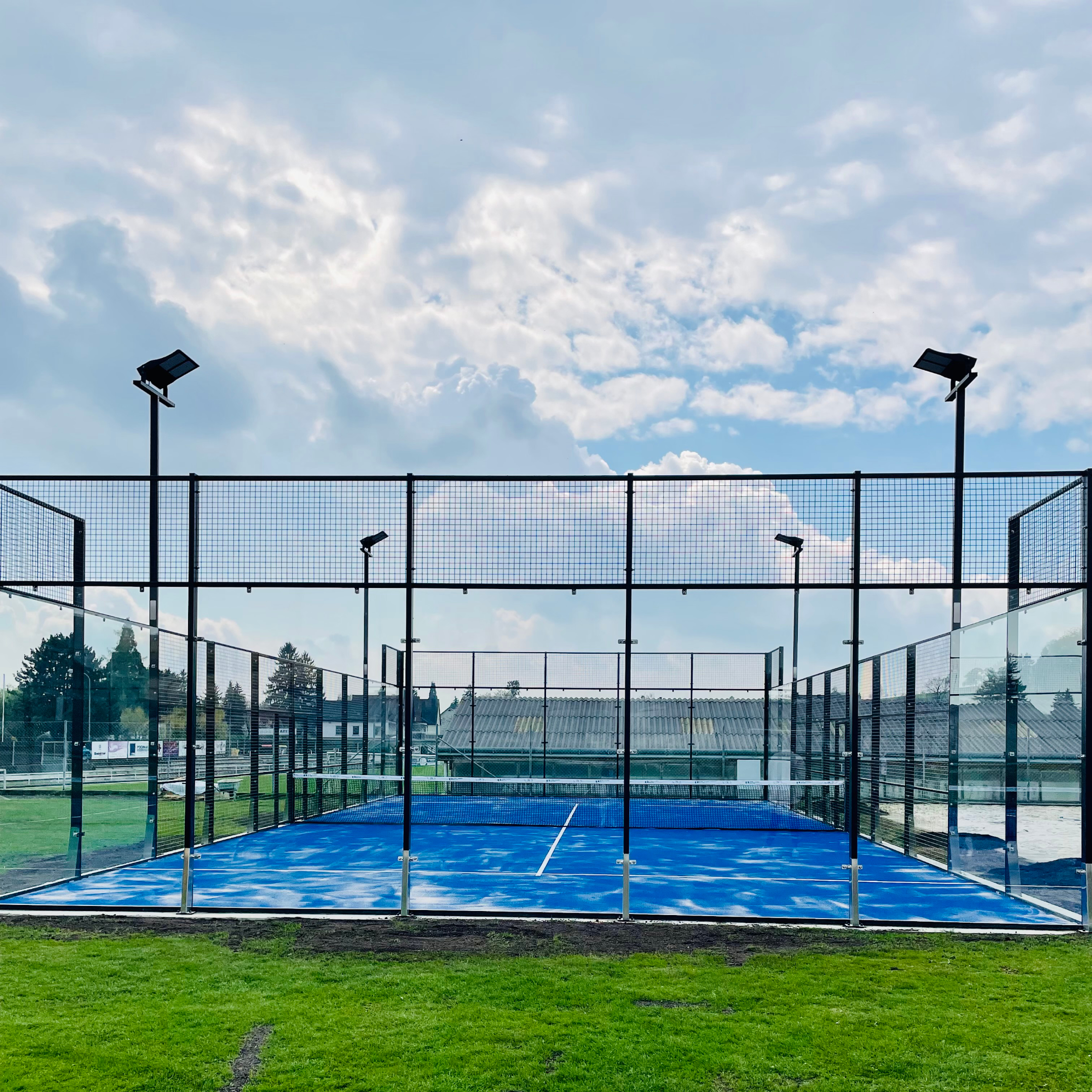 Padel wird grundsätzlich im Doppel (2×2 Personen) gespielt. Das Spielfeld misst 10 mal 20 Meter und ist von Glaswänden und Drahtzaun umgeben.